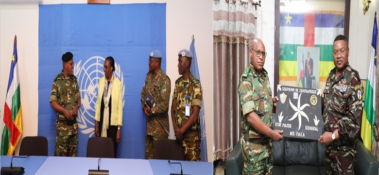 Le Chef-adjoint de la FDNB a, à cette occasion, rencontré différentes autorités en l’occurrence Madame Valentine Rugwabiza, Représentante Spéciale du Secrétaire Général des Nations Unies, en même temps Cheffe de la MINUSCA, le Commandant de la Force de la MINUSCA, le Lieutenant-Général Humphrey Nyone, ainsi que le Général d’Armée Zépherin Mamadou, Chef d’État-Major Général des Forces Armées Centrafricaines (FACA).