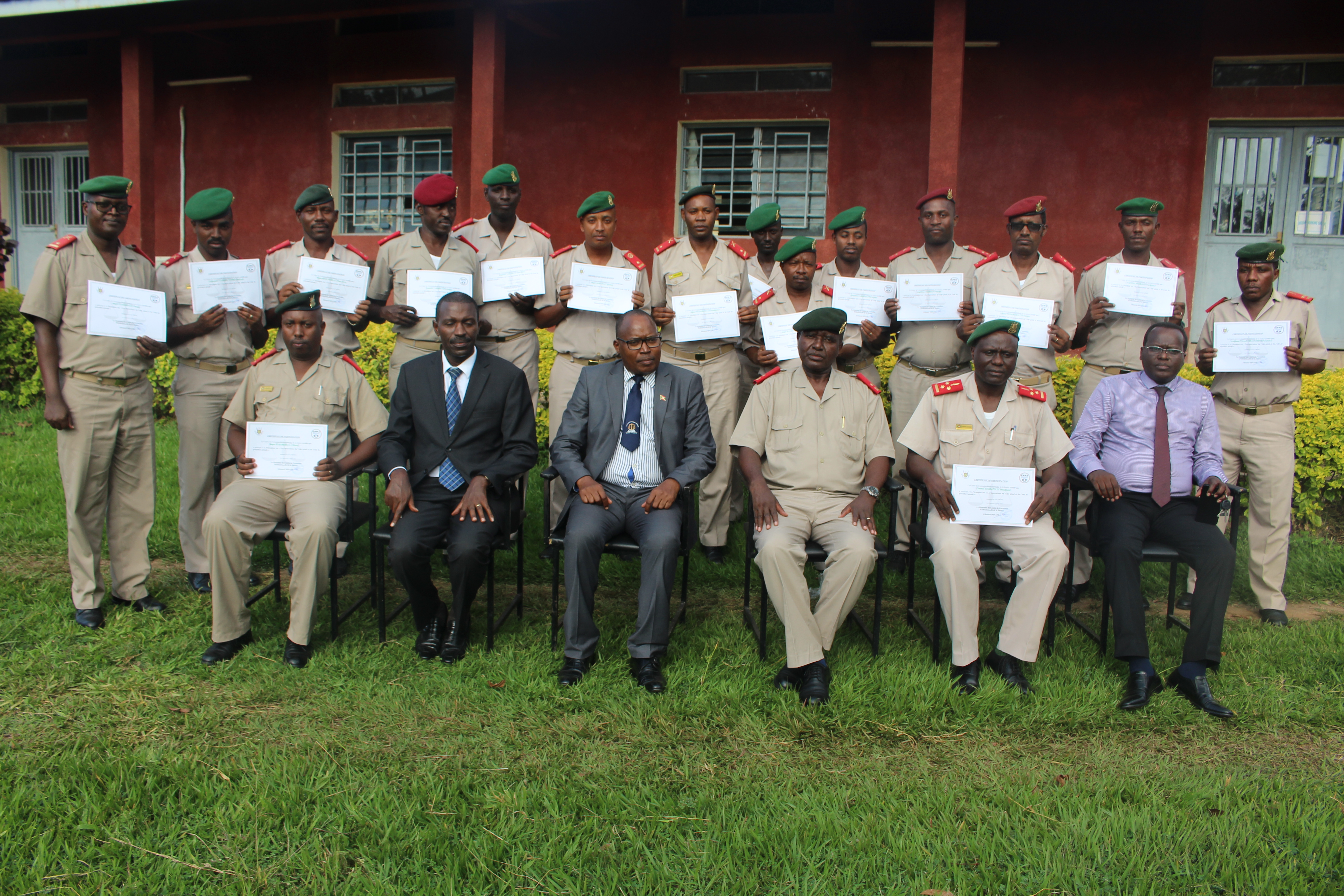 Remise des certificats aux magistrats militaires lors de la clôture de formation sur les innovations du code pénal et procédures pénales. Cette formation a été dispensée par le Centre de Formation Professionnelle de la Justice( CFPJ) en date du 13 au 17 mai 2019.