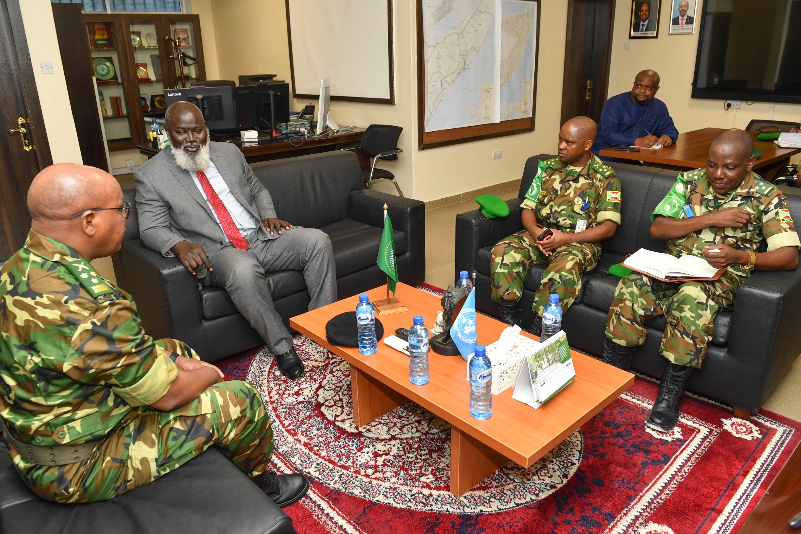 Le Chef Adjoint de la Force de Défense Nationale du Burundi s’est également entretenu avec le Représentant Spécial du Président de la Commission de l'Union Africaine en Somalie et Chef de Mission, l'Ambassadeur El Hadji Ibrahima Diène. Leurs échanges se sont focalisés sur le mandat de l'AUSSOM et le renforcement des efforts de lutte contre Al-Shabaab, tout en soutenant les initiatives de paix menées par les Somaliens. Le SRCC a salué l'engagement, le professionnalisme et les sacrifices consentis par le Burundi pour la promotion de la paix et la sécurité en Somalie.