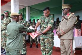 Le Chef de la FDNB a rappelé aux lauréats qu’ils sont formés pour commander une section ou un peloton dans certaines circonstances. De ce fait, il les a recommandés de servir de bon exemple à leurs subordonnés, leur inspirer confiance à travers une rigueur constructive guidée par le respect inconditionnel des valeurs fondamentales de la FDNB qui sont : la discipline, le patriotisme, la loyauté, la cohésion et le professionnalisme.