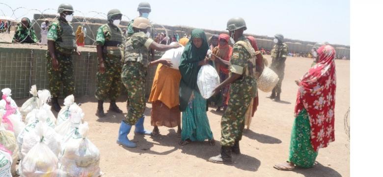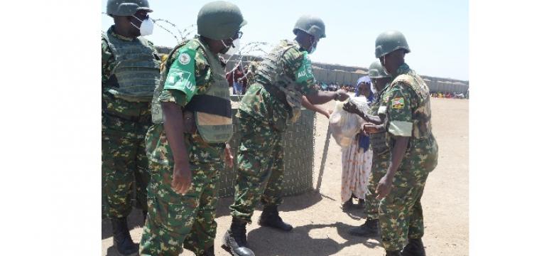 Le 14e contingent burundais de l’AMISOM a octroyé une aide de 1648kgs de vivres à 100 familles vulnérables du camp des déplacés de Towfik à Jowhar Air Field le 12 mars 2022. Cette aide est composée du riz, de la viande, du haricot, de pomme de terre pour ne citer que ceux-là. Les familles bénéficiaires de cette aide saluent l’esprit charitable et fraternel des militaires burundais.