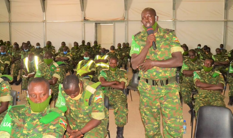 Le Commandant du 13ème contingent burundais de l’AMISOM, le Général de Brigade Télesphore Barandereka, a animé une causerie morale à l’endroit des militaires basés à Jowhar Air Field le 11 janvier 2021. Il leur a recommandé de continuer à observer les valeurs fondamentales de la FDNB et de rester toujours vigilants pour protéger la population somalienne contre Al Shabaab.