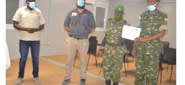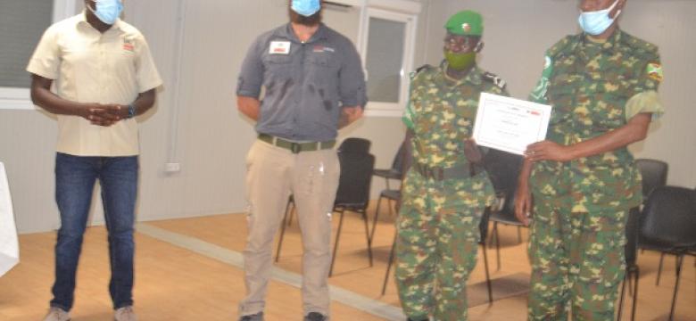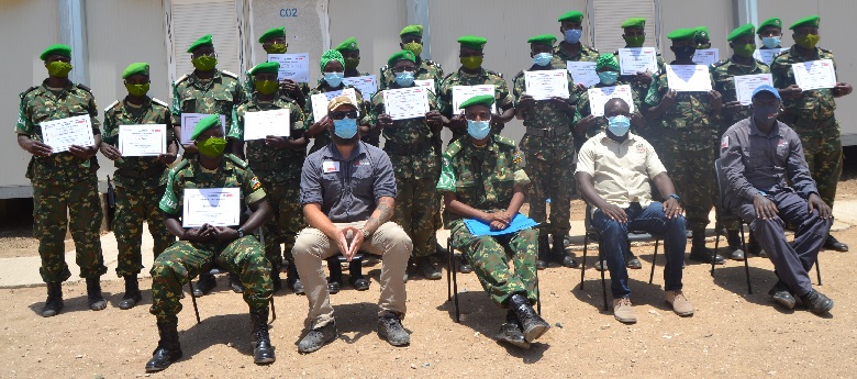 Vingt militaires du 14e contingent burundais de l’AMISOM ont reçu des certificats le 15 mars 2022 après une formation de six jours sur les techniques de fouille des véhicules et des personnes pouvant être munis des engins explosifs improvisés aux entrées et sorties des FOBs. Cette formation a été dispensée par L »UNMAS à Jowhar Air Field.
