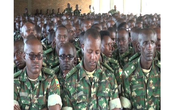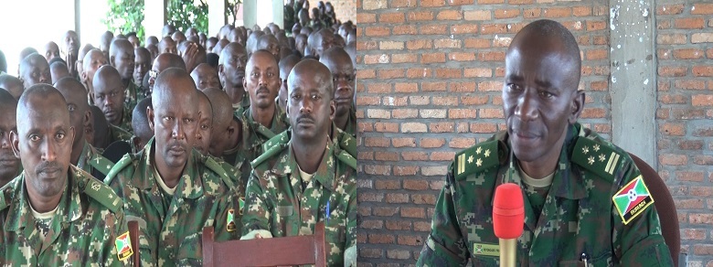 Le Chef de la Force de Défense Nationale du Burundi, le Général Prime Niyongabo a animé une causerie morale jeudi le 19 mai 2022 à Mudubugu à l’intention des 65 et 66e Bataillons de l’ATMIS (Mission de Transition de l’Union Africaine en Somalie) pour renforcer la discipline et la cohésion dans les missions de maintien de la paix. Il les recommande d’être caractérisés par la cohésion, l’unité et le professionnalisme pour l’honneur du Burundi en général et de la FDNB en particulier.