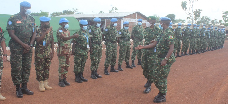 Le contingent burundais de la MINUSCA en mission de maintien de la paix en RCA a été historiquement honoré par la visite, en son sein, du Président de la République du Burundi et Commandant Suprême des corps de Défense et de Sécurité, Son Excellence Evariste Ndayishimiye, au lendemain de l’investiture du Président Centrafricain. Il a été accueilli par  le Chef de la FDNB, le Général Prime Niyongabo qui avait rendu visite au  contingent  du 28 au 31 mars 2021.